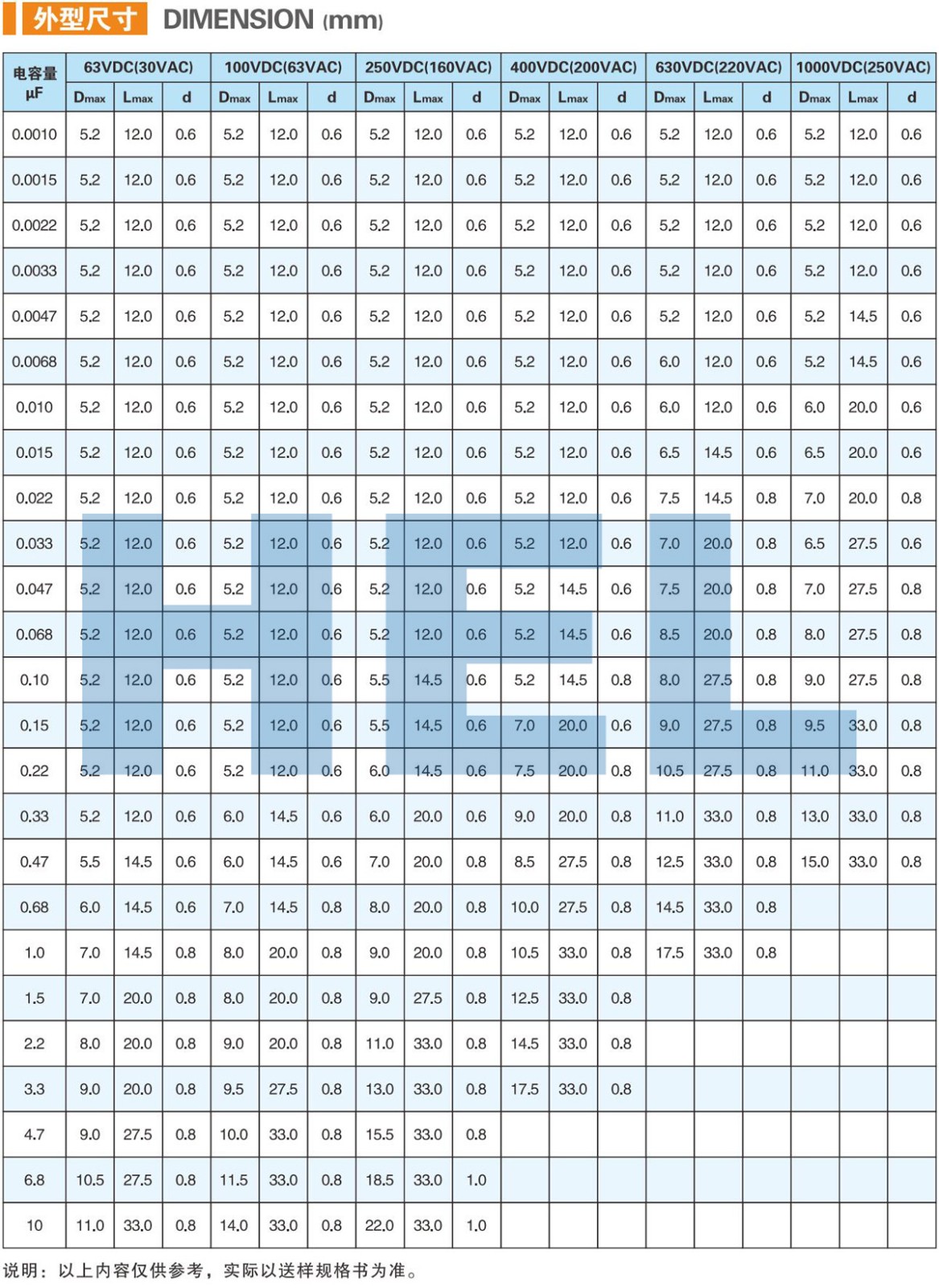 MET軸向金屬化聚酯薄膜電容器 CL20